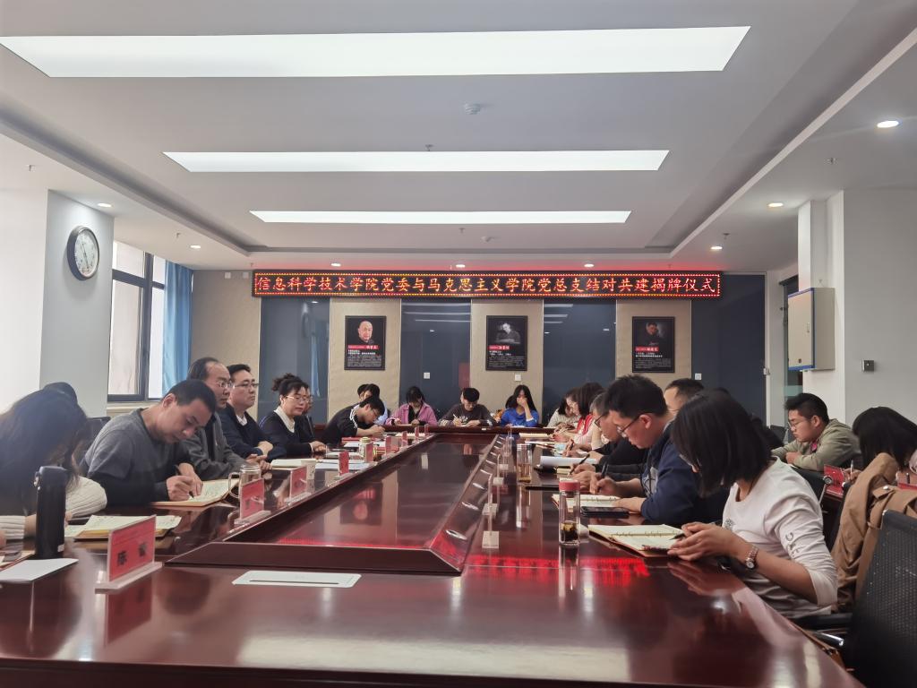 为确保党史学习教育取得扎实成效,进一步推进“十四五”发展开好局、起好步。近日,信息科学技术学院党委和马克思主义学院党总支在格物楼1602室举行结对共建揭牌仪式。马克思主义学院党总支书记闫翔,信息科学技术学院党政领导、党委委员、全体教师、学生代表共计50余人出席参加。双方就如何加强党建引领,构建“共建、共享、共促”的融合机制达成了共识。