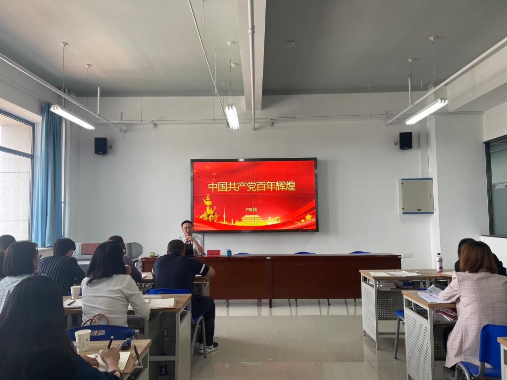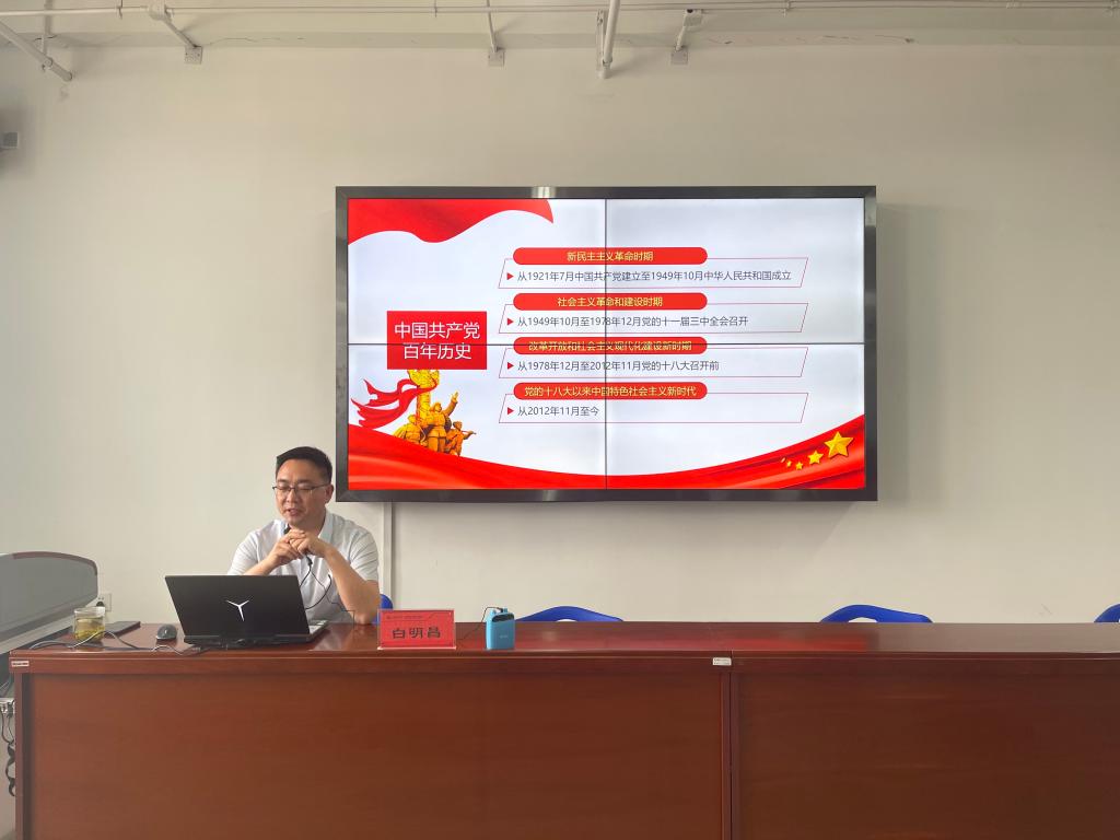 白明昌以回顾总结中国共产党百年辉煌为主题,结合百年党史中的重大转折事件,深入浅出地解读了中国共产党百年历史。白明昌指出,从1921年到2021年,中国共产党走过了整整一百年的历程。这是用鲜血、汗水、泪水、勇气、智慧、力量写就的百年;是筚路蓝缕、披荆斩棘、艰苦创业、砥砺前行、充满艰险、充满神奇的百年;争取民族独立、人民解放和实现国家富强、人民幸福,是中国共产党百年历史的主题和主线;“不懈奋斗史”“理论探索史”“自身建设史”,是中国共产党百年历史的主流和本质;把革命、建设、改革、复兴事业不断推向前进,是中国共产党百年历史的鲜明特征;逐步实现救国、兴国、富国、强国的奋斗目标,是中国共产党百年历史的庄严使命。