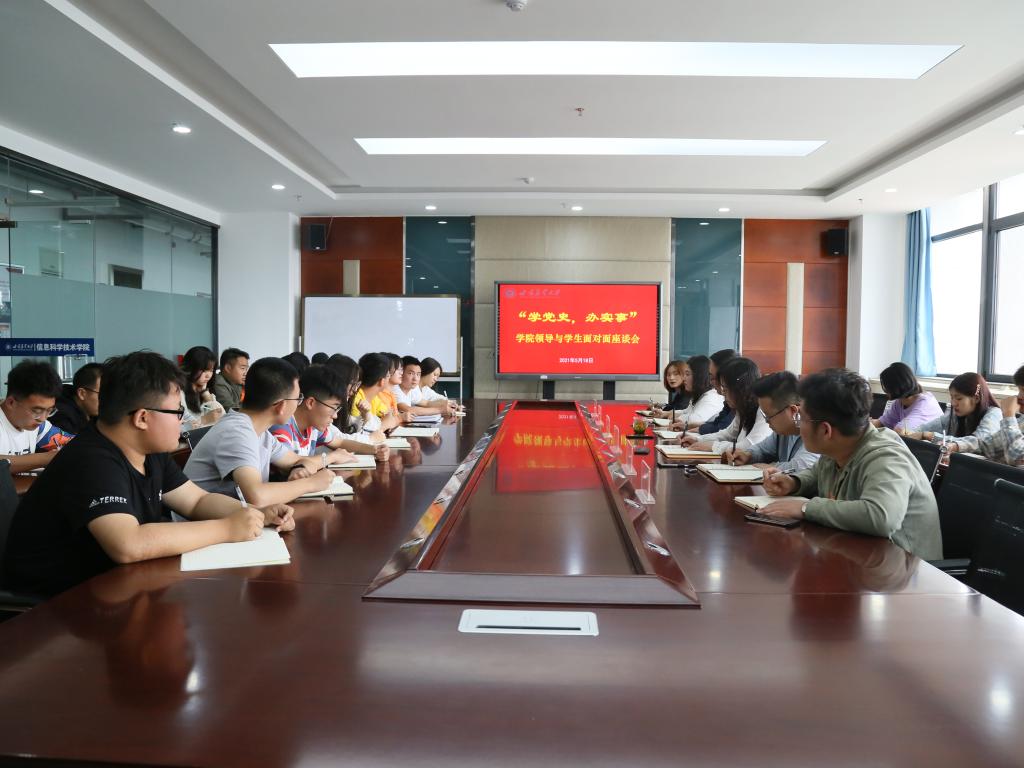 5月18日中午,信息科学技术学院在学院会议室格物楼1602室召开“学党史、办实事”学院领导与学生面对面座谈会。学院党委书记、分管学生工作领导、全体辅导员及学生代表共计50人参加会议,会议由学院党委副书记陈蓓主持。